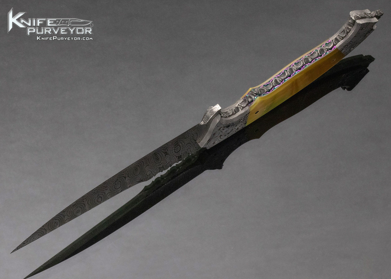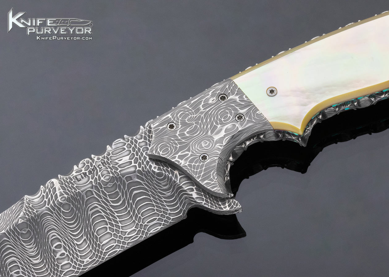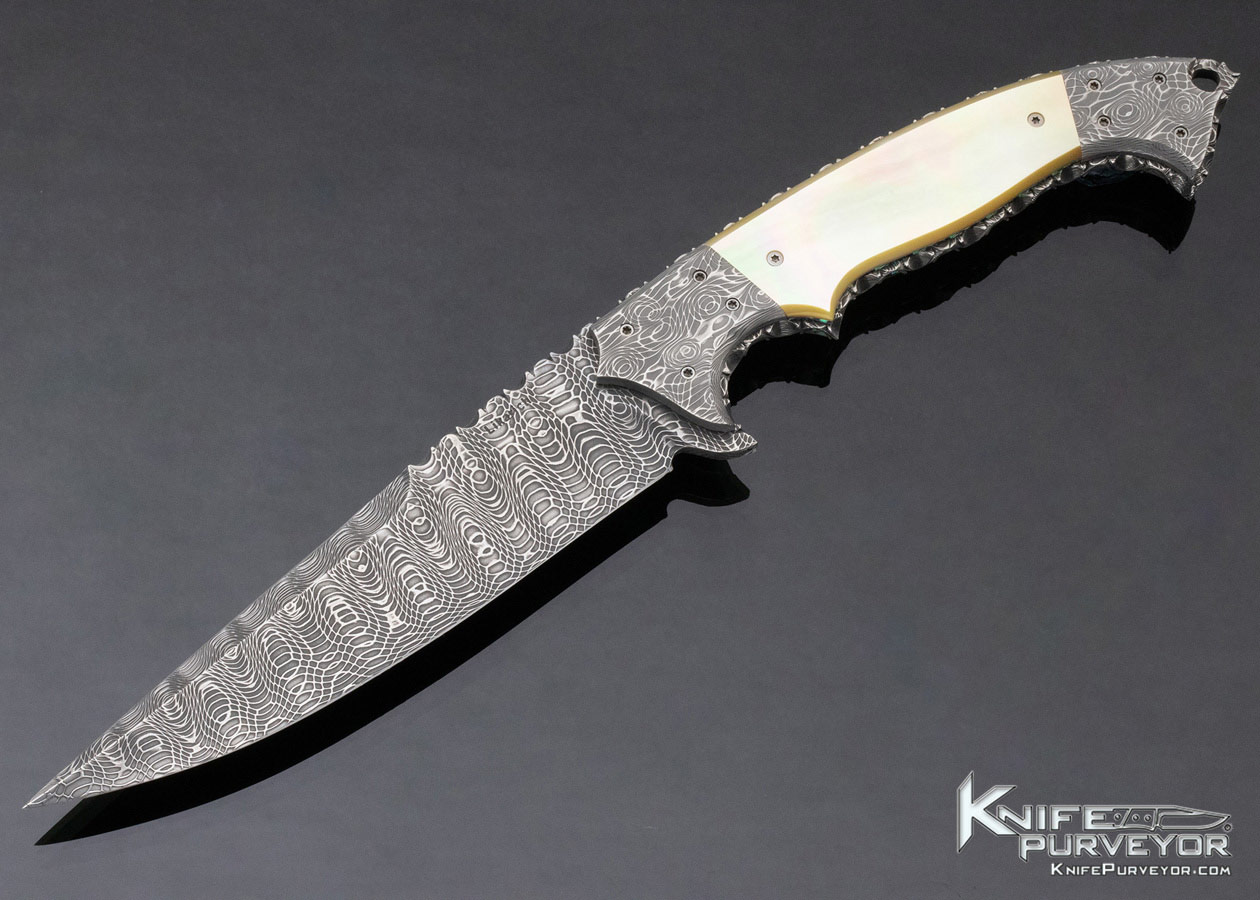 Steve Likarich Custom Knife Damascus and Gold Lip Pearl Fixed Blade