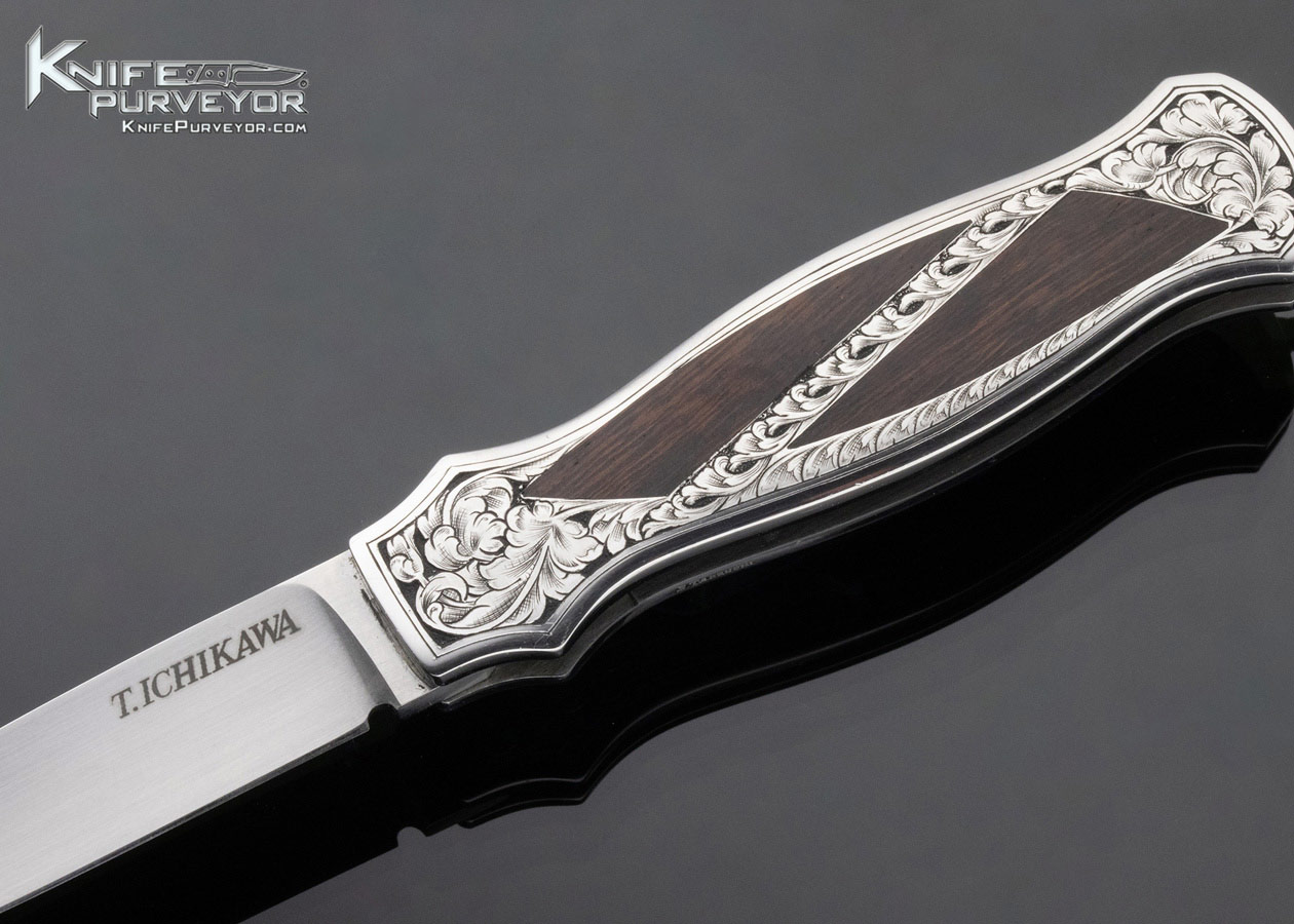 T Ichikawa Custom Knife Engraved Ironwood Lockback