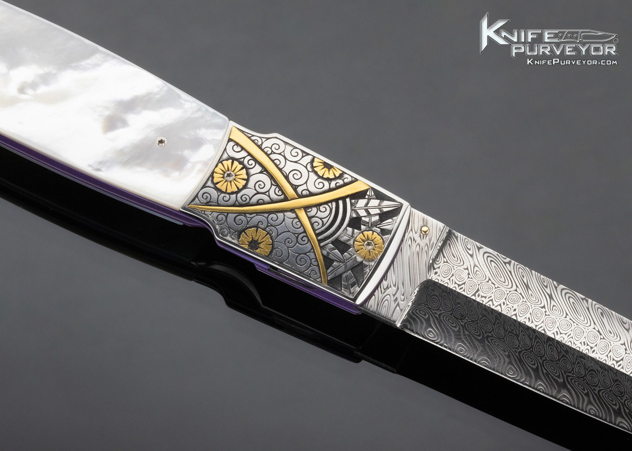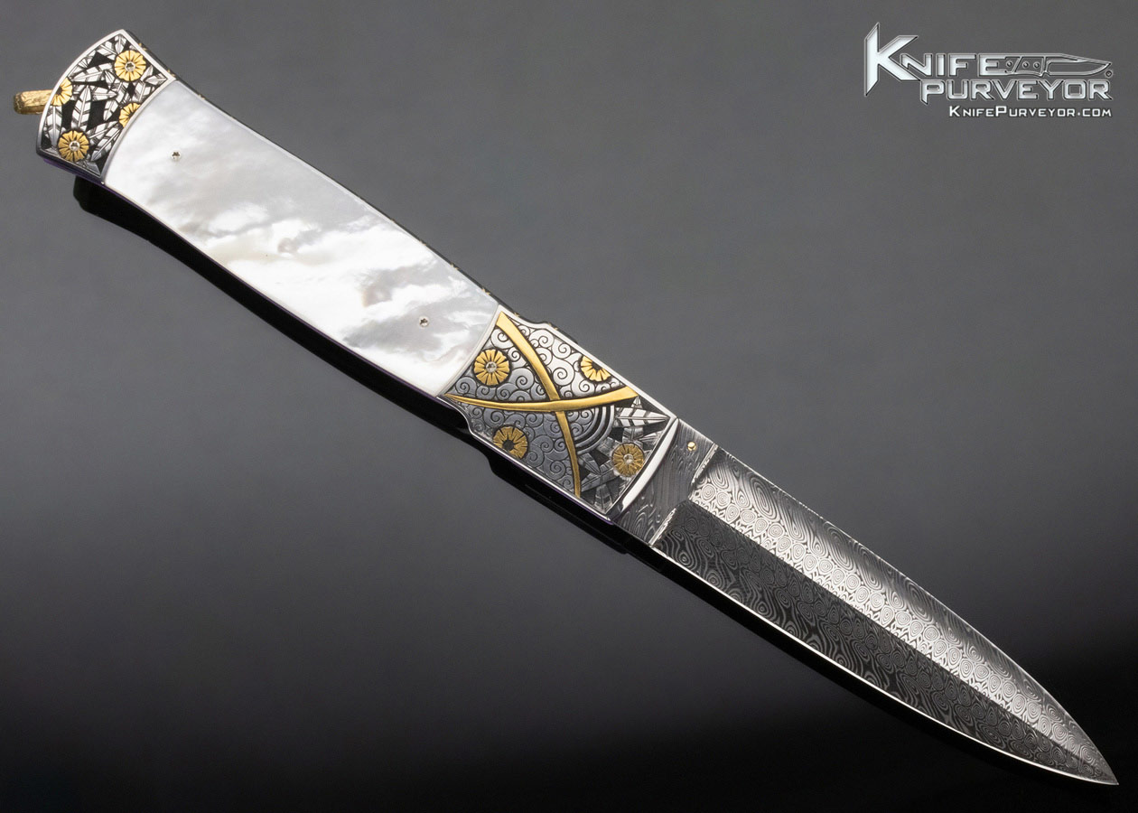 Howard Hitchmough Custom Knife Damasteel Damascus & Mother of Pearl Linerlock Dagger Engraved by Tim George