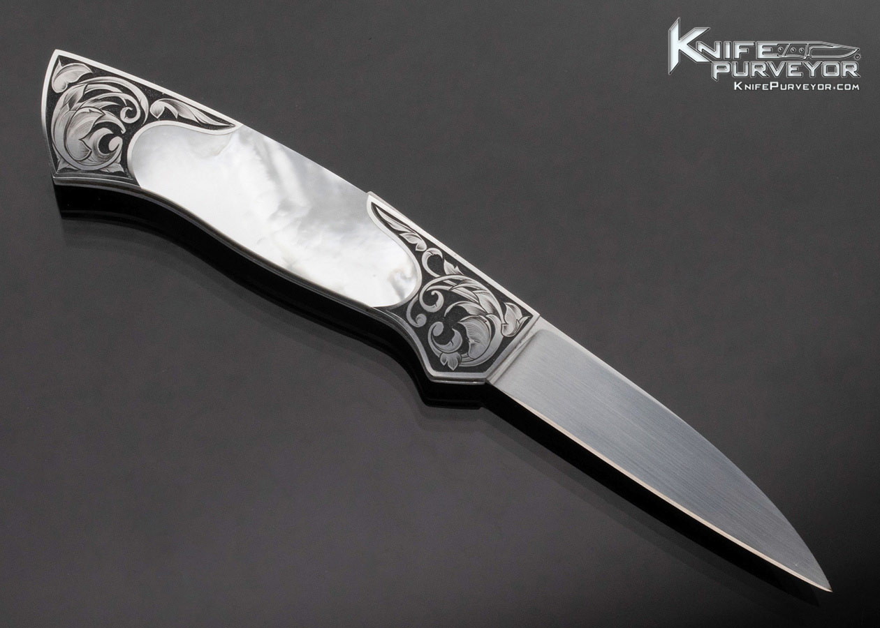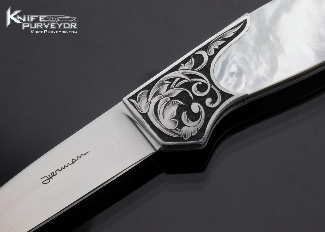 Tim Herman Custom Knife Sole Authorship Engraved Mother of Pearl Semi Interframe Lockback