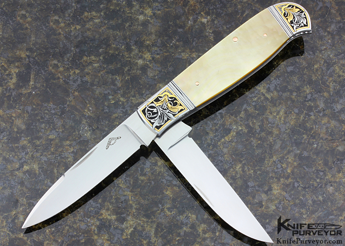Warren Osborne Custom Knife Double Blade Slipjoint Gold Lip Pearl Scales Engraved With 24kt Gold Inlay
