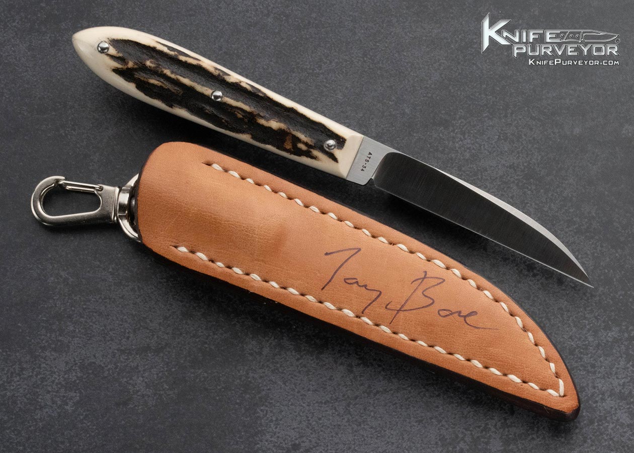 Tony Bose Custom Knife Stag Desk Knife with Signed Leather Sheath