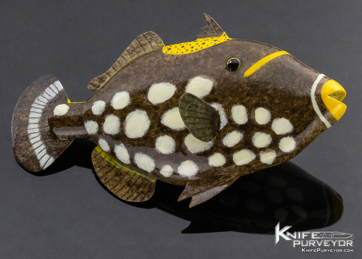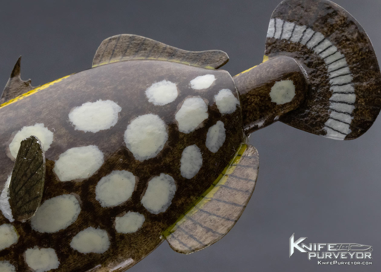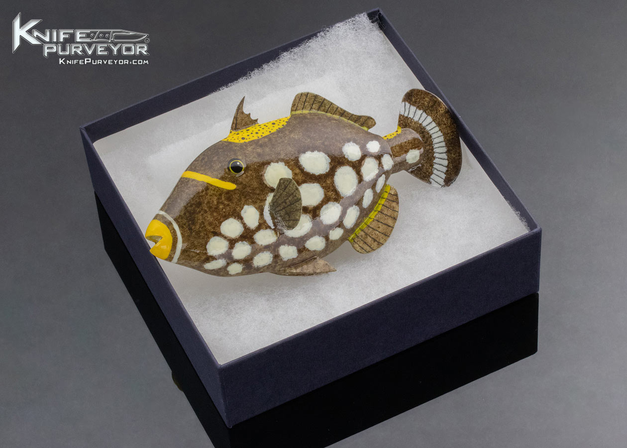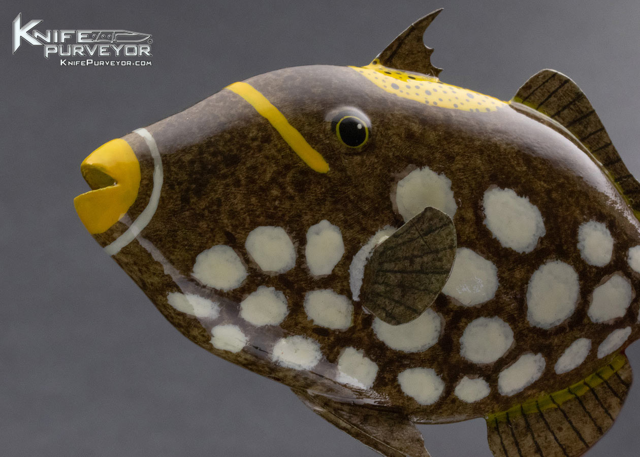 Tsuguo Kurosawa Custom Knife Carved Trigger Fish, Painted, and Lacquered Wood Handle