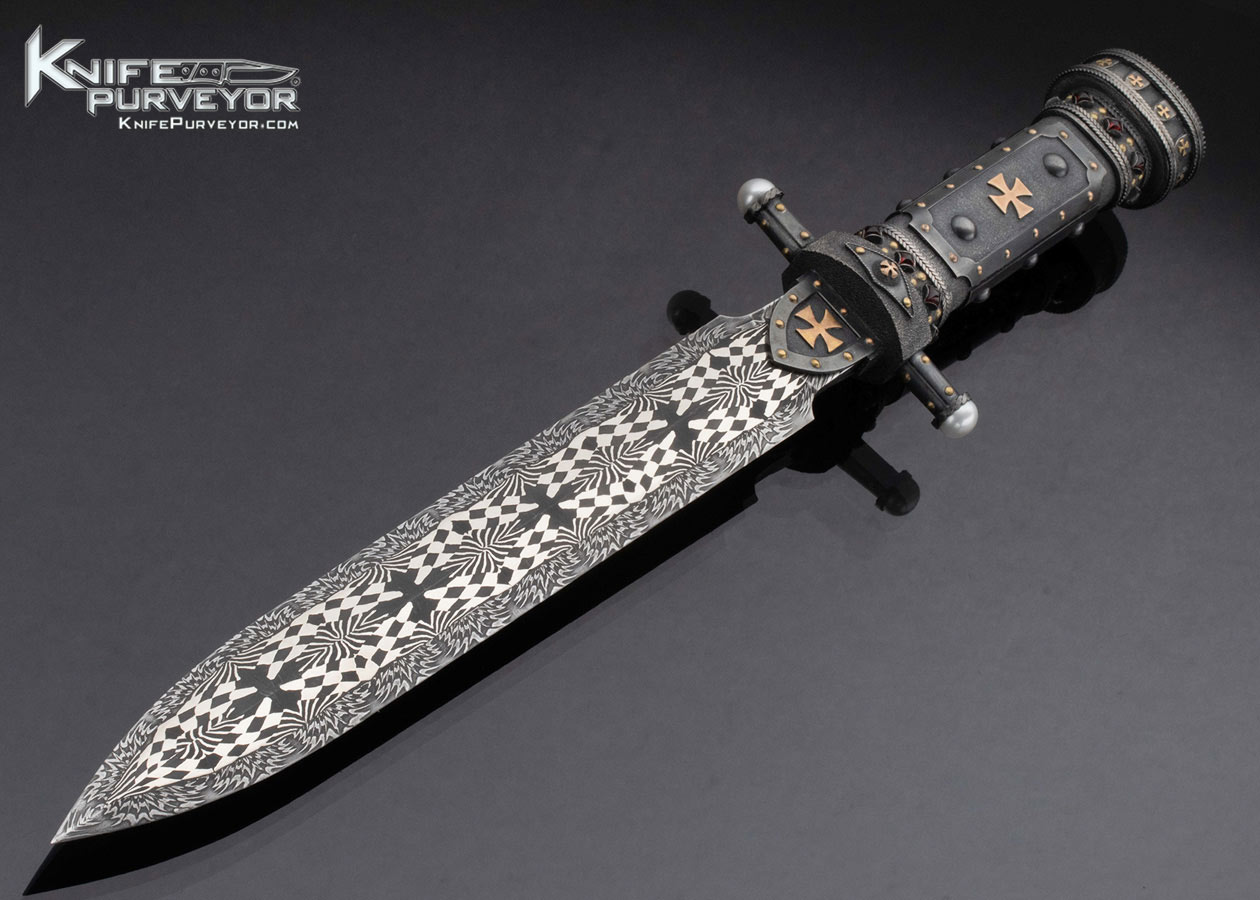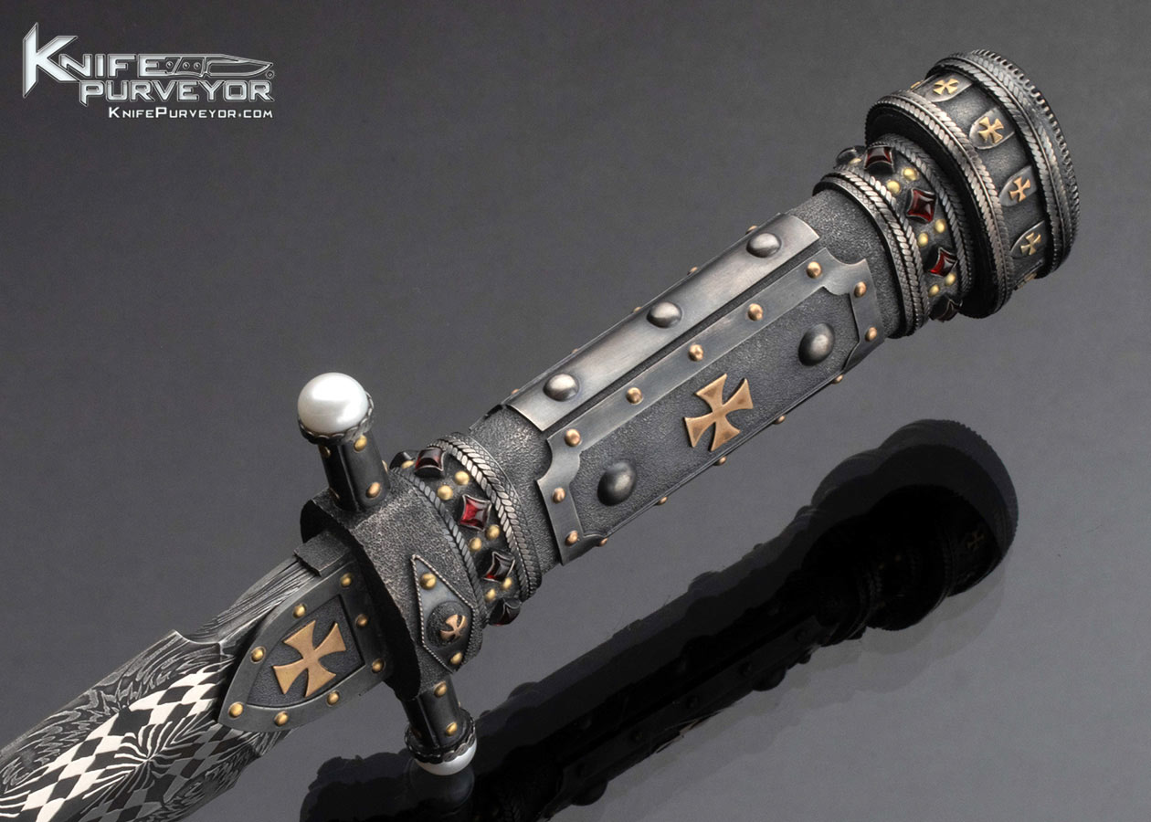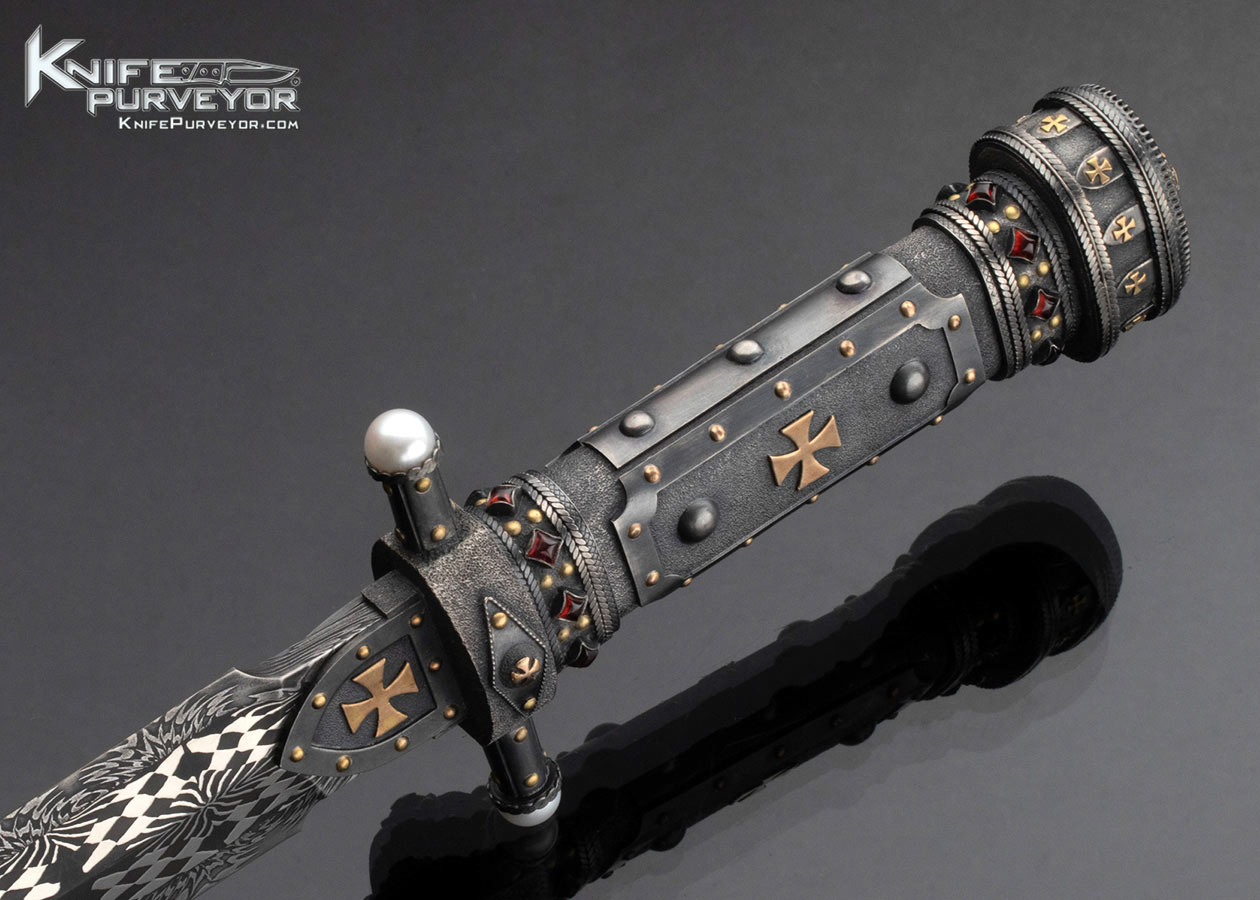 Vladimir Kolenko Custom Knife Mosaic Damascus Presentation Dagger Inlaid with Rubies, Gold, and Pearls