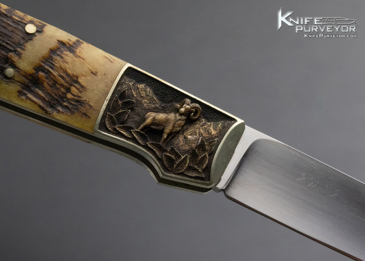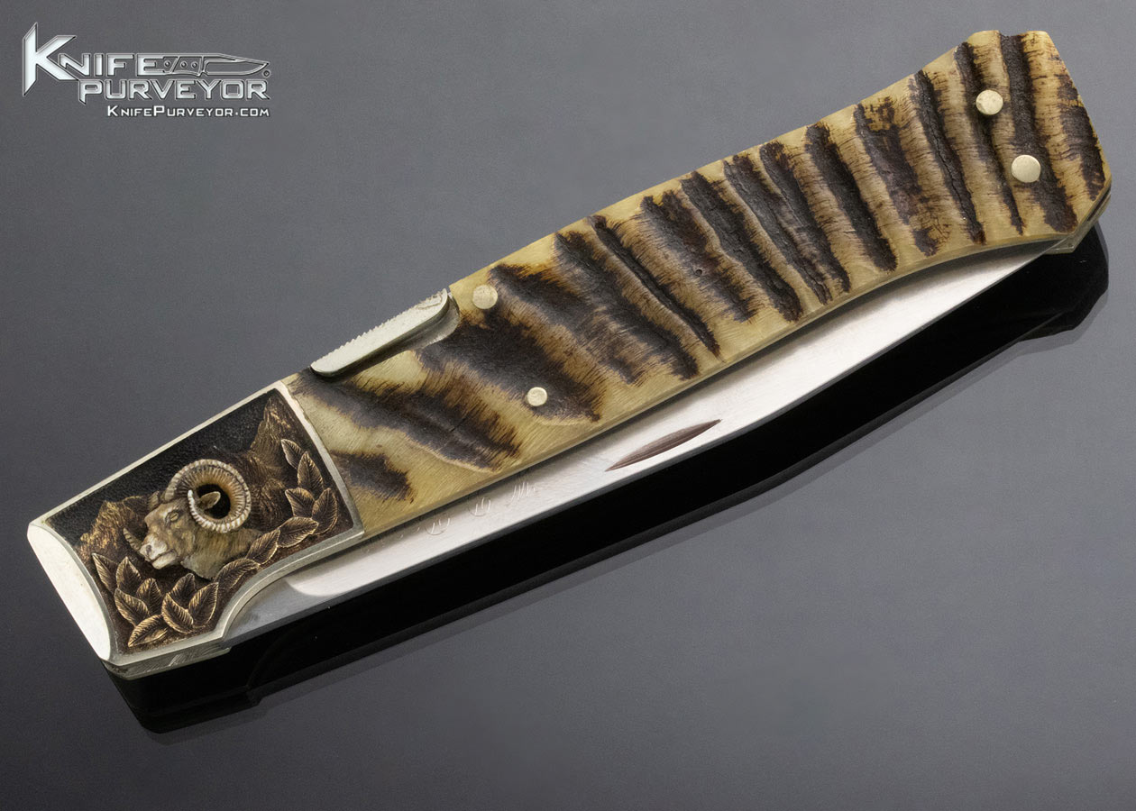 W.D. Pease Custom Knife 1988 Big Horn Sheep Horn SideLock Engraved by Gary Blanchard