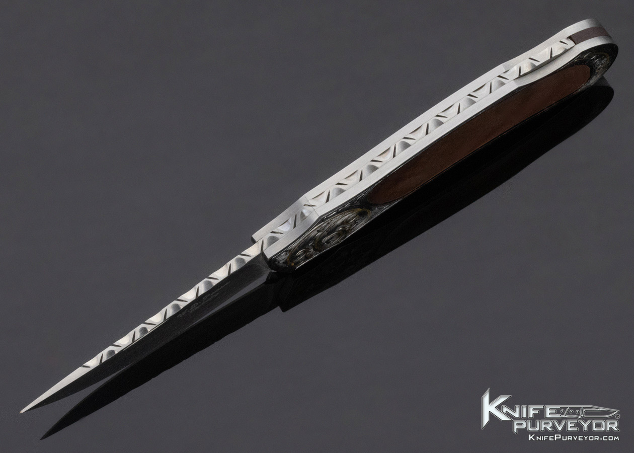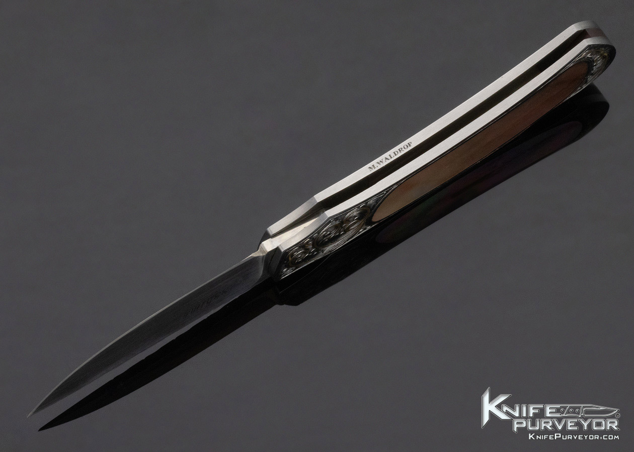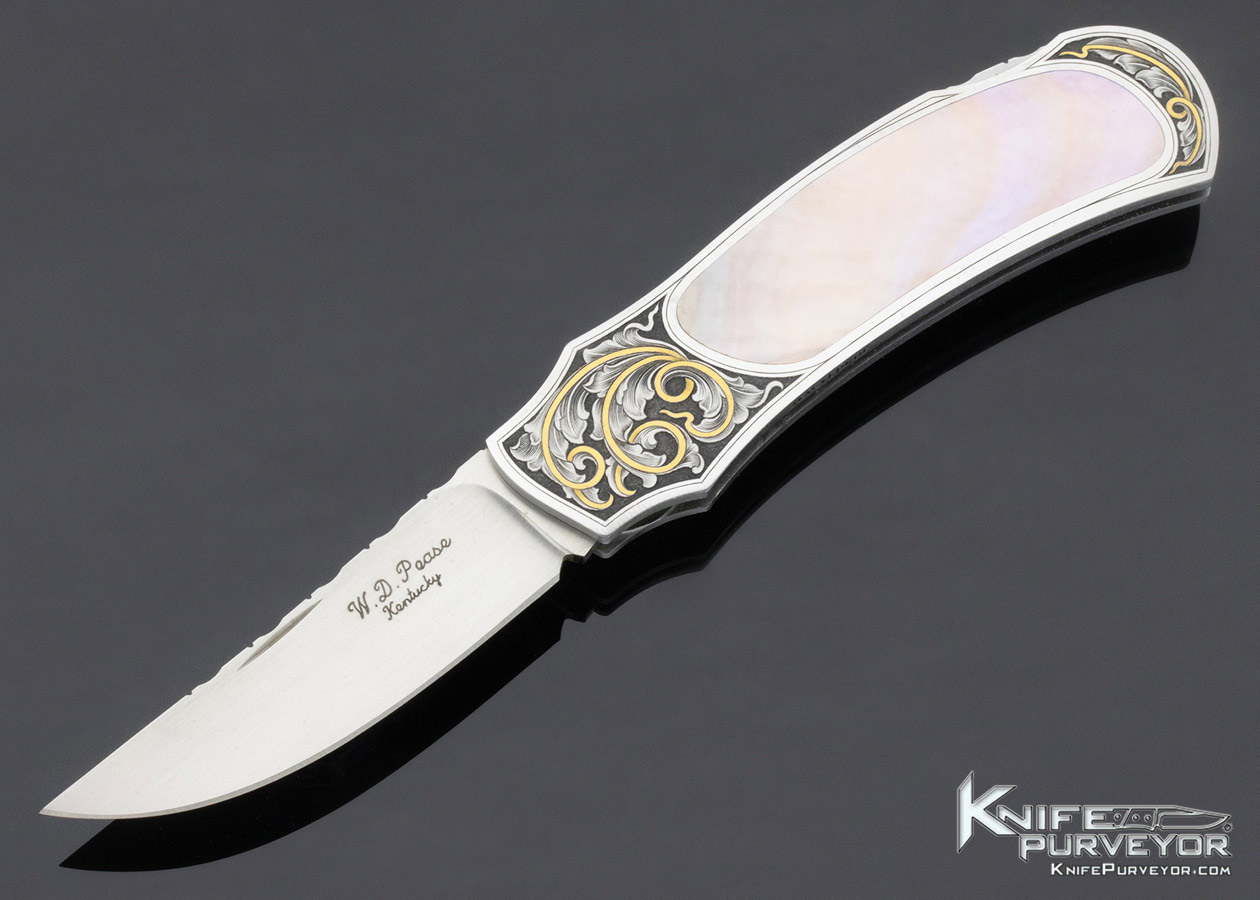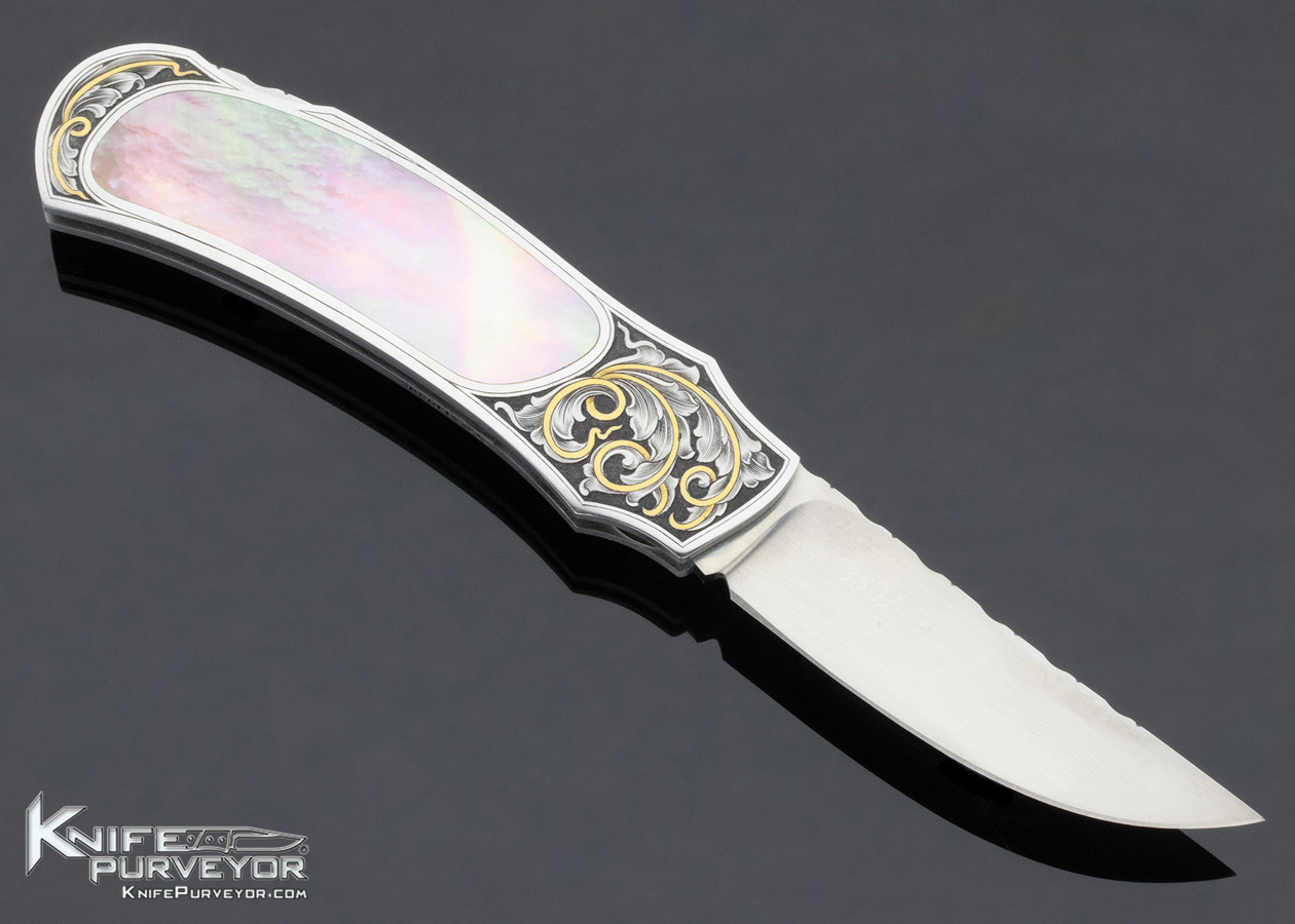 W.D. Pease Custom Knife Black Lip Tahitian Pearl Interframe Lockback Engraved by Mark Waldrop