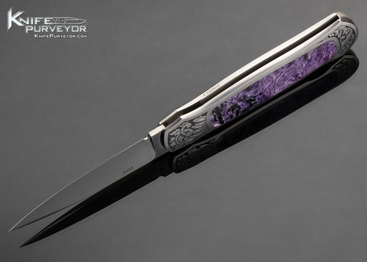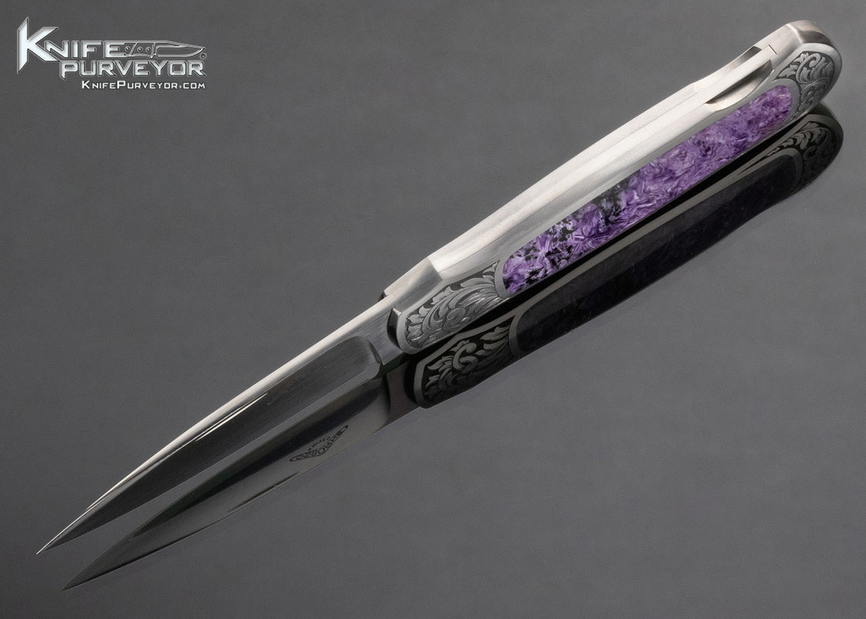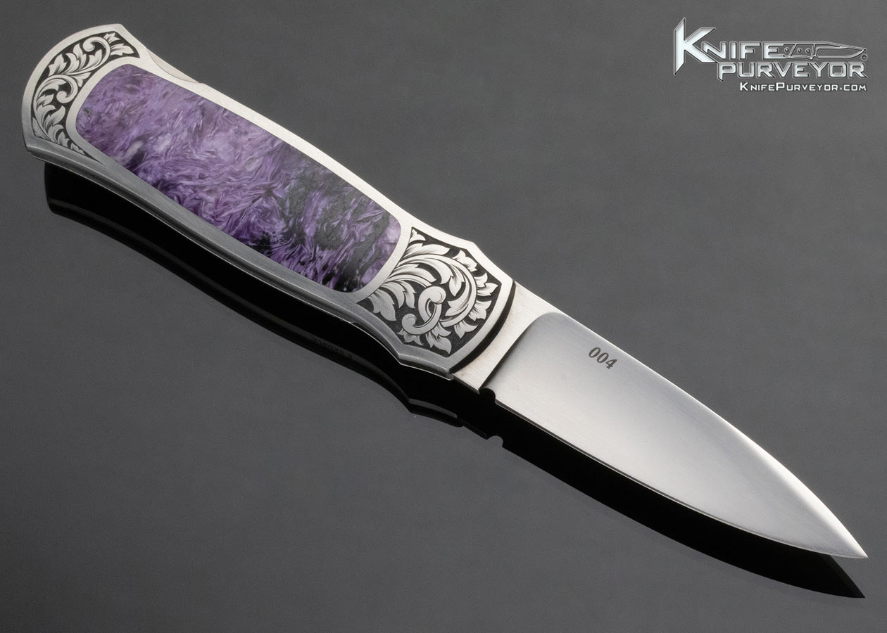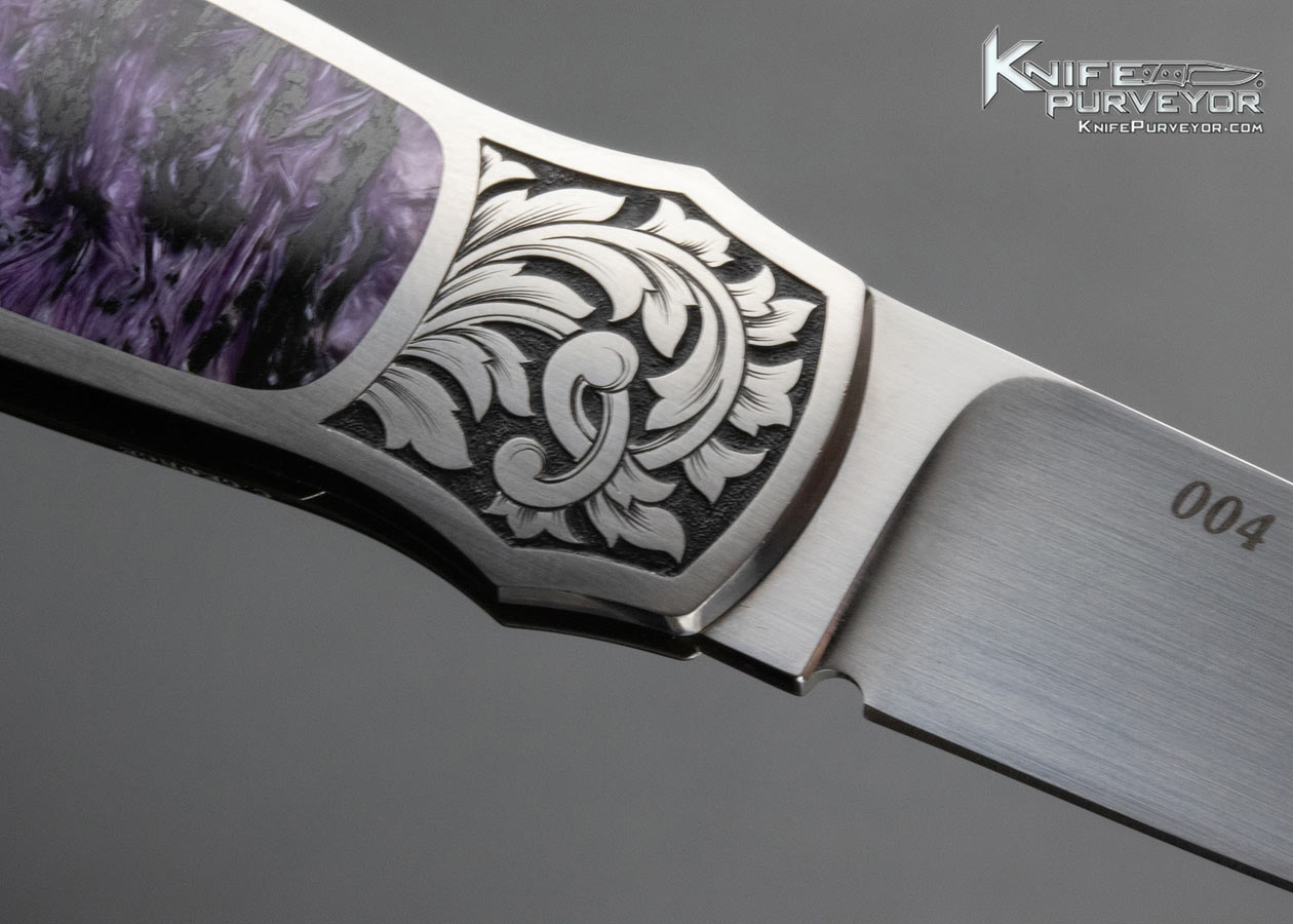 Warren Osborne Custom Knife Charoite Interframe Lockback Engraved by Christy George