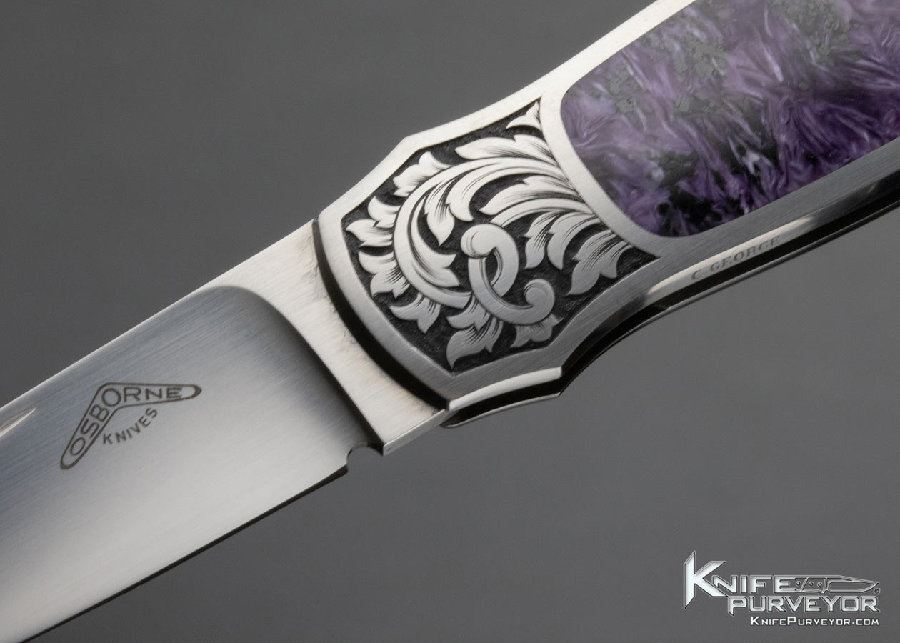 #423 Warren Osborne Custom Knife Charoite Interframe Lockback Engraved by Christy George