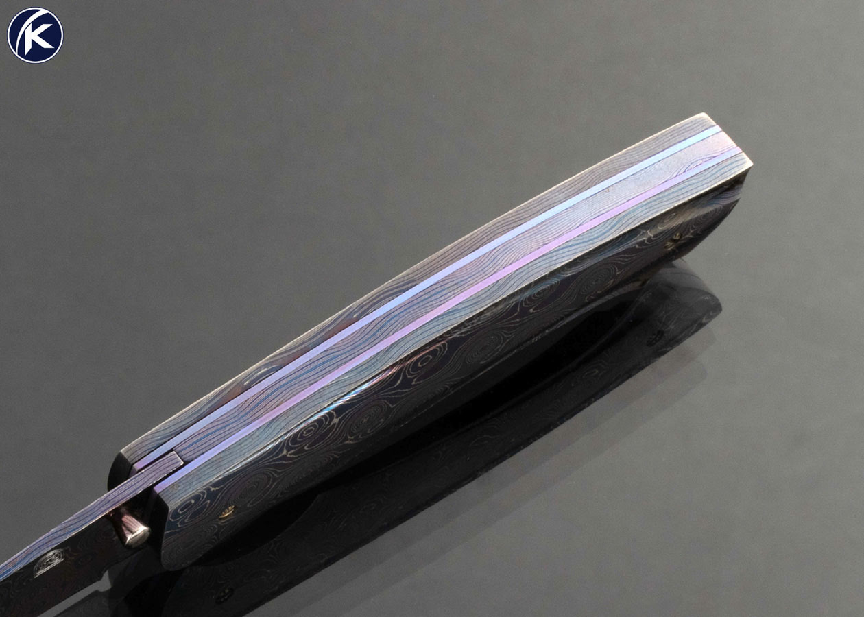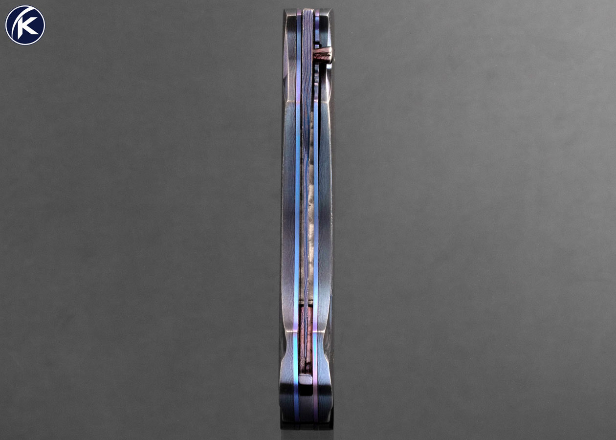 William Tuch Custom Knife Devin Thomas Raindrop Damascus Carved Scale Auto Linerlock Folder