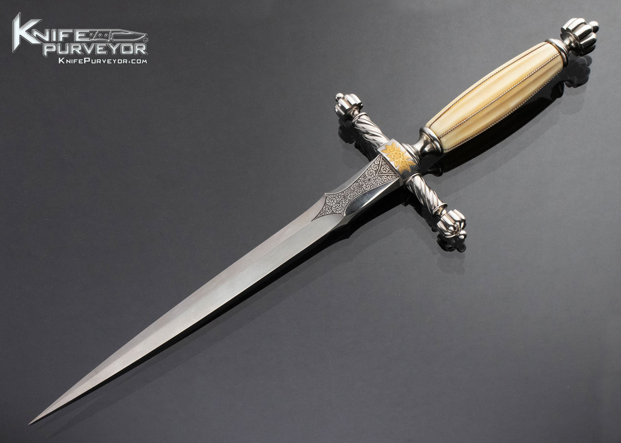 Wolfgang Loerchner Custom Knife Martin Butler Engraved with 24Kt Gold Inlays Mammoth Dagger with Fine Silver Wire Inlay